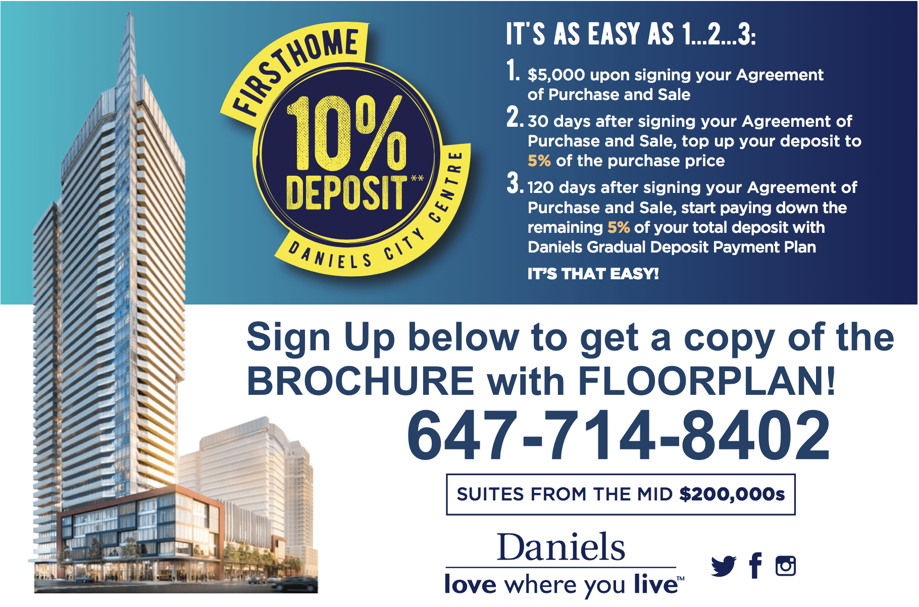 The Wesley Tower is the newest addition to Daniels City Centre in Mississauga. This master-planned community by Daniels is in Mississauga’s top location with retail, restaurants, and the amazing community of the Mississauga City Centre.